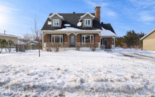 L'intérieur de cette résidence se distingue par un design alliant confort et élégance. Le salon, spacieux et lumineux, est équipé d'un foyer au bois central, créant un espace chaleureux et convivial autour duquel la vie familiale s'organise naturellement. Les murs en lambris ajoutent une touche de charme rustique, tandis que les planchers en latte de bois peints contribuent à l'esthétique unique et raffinée de la maison.La cuisine, fonctionnelle et moderne, est équipée de comptoirs en granite qui ajoutent une touche d'élégance et de durabilité. Un îlot central avec un coin repas intégré offre un espace idéal pour les moments en famille ou entre amis. Deux portes d'accès principales permettent d'entrer à l'intérieur, facilitant une circulation fluide vers les différents espaces de vie.